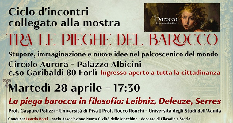 L’incontro propone una riflessione sul tema della “piega” nel pensiero filosofico, a partire dalla concezione di Leibniz fino alle interpretazioni contemporanee di Deleuze e Serres. La piega barocca diventa chiave di lettura per comprendere non solo l’estetica e la cultura del Barocco, ma anche le dinamiche della contemporaneità.