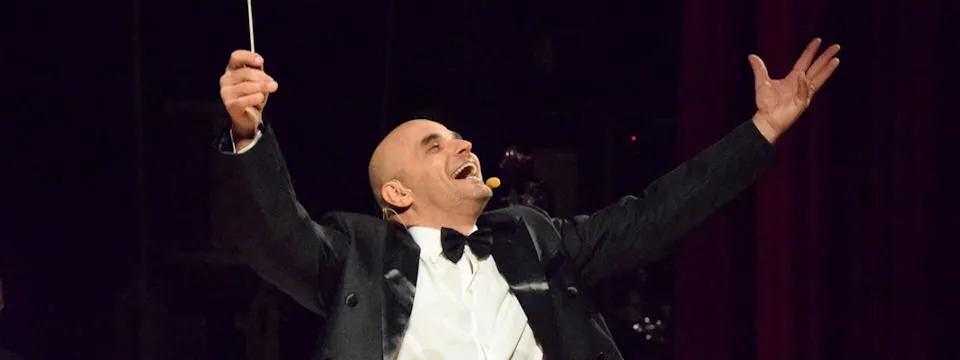 Da una parte, un’Orchestra di altissimo profilo che vuole incantare il pubblico con l’esecuzione di brani di repertorio classico. Dall’altra, un grintoso showman che cerca il suo palcoscenico per esprimere il suo talento. Un incidente di percorso farà incontrare i due.