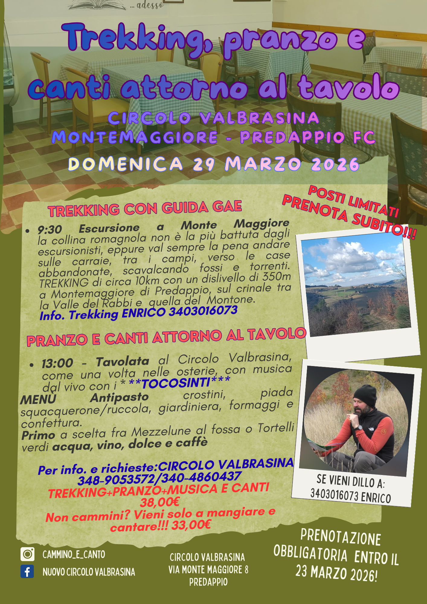 13:00 Tavolata al Circolo Valbrasina come una volta nelle osterie, cantando con i Tocosinti